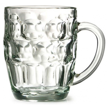 Dimpled glass beer mug with handle, 1 pint...